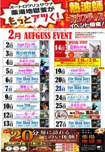 2月も薬湯は熱い‼熱波アウフグースイベント開催‼ 2026.01.30 薬湯市原店です😆 大好評 アウフグースイベント開催‼ 2月も開催致します。 熱波強化月間‼ 薬湯から目が離せない‼ ぜひご期待ください。 Tweet この記事のタイトルとURLをコピーする サウナの後は【ととのいレモンサワー】で‼ 前の記事 2月イベントスケジュールはこちら‼ 次の記事
