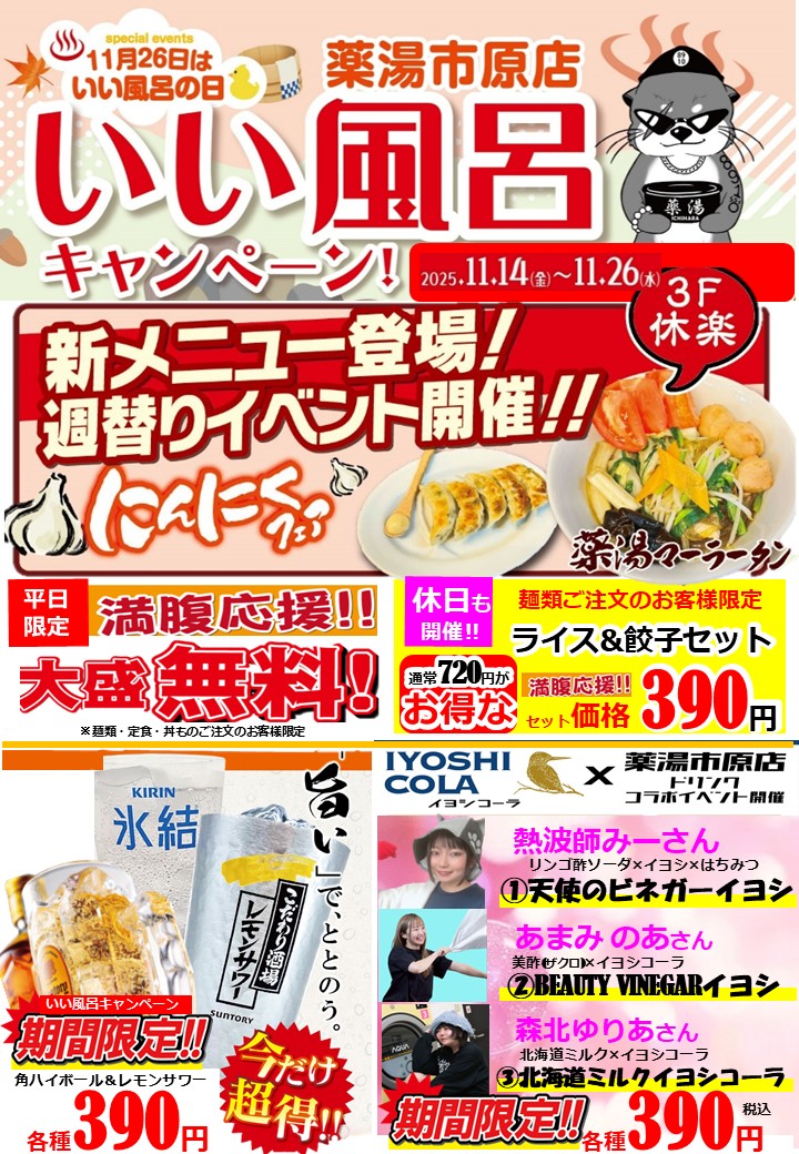 脱衣所より3階におあがりいただくと、食事処「休楽」がございます。